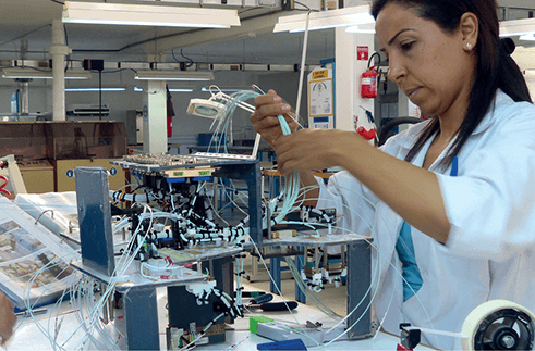 En accord avec nos clients, cette unité tunisienne de production réalise les câblages, dès lors que ceux-ci peuvent être intégrés dans le cycle de co-traitance à l’étranger.